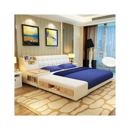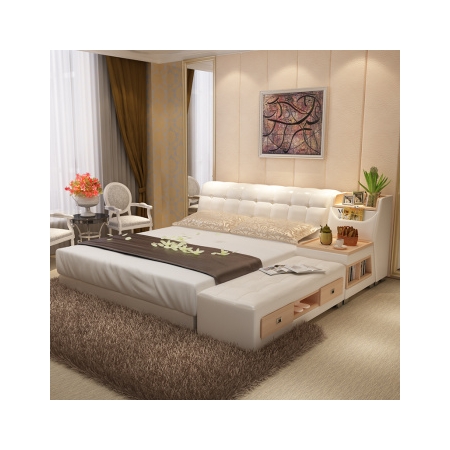乐和居 床 榻榻米储物软床 皮床双人床 真皮床婚床 1.5/1.8米 床含储物柜